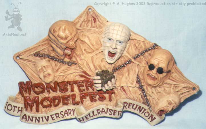 | Notes | This plaque was sculpted and produced specifically for the Hellraiser 10th anniversary celebration held at the 1997 Boston Monster Modelfest, which was attended by the 3 Cenobites depicted in the plaque. While I was there I managed to get all three to autograph the back! | ||