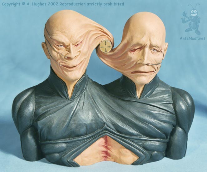 | Notes | A 1-piece casting, flawless apart from a mold step around the inside "hole". I believe this was sculpted by one of the film's sfx crew - hense the excellent likeness. The tensioning wires were made from 13A fuse wire. | ||