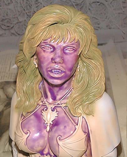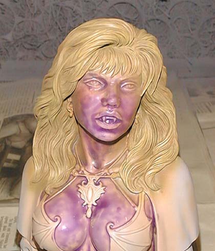 Step 2. I masked her face with Maskol and added some lowlights and shadows, loosly airbrushed in with an olive green shade. Yes, green. I thought it sounded daft too, but several people on the Gremlins mailing list said this was the way to go, so I thought I'd give it a try!
