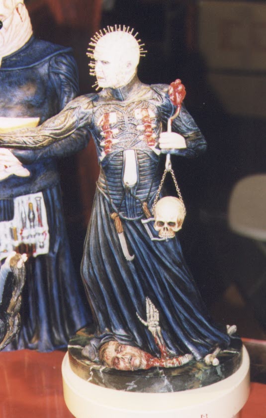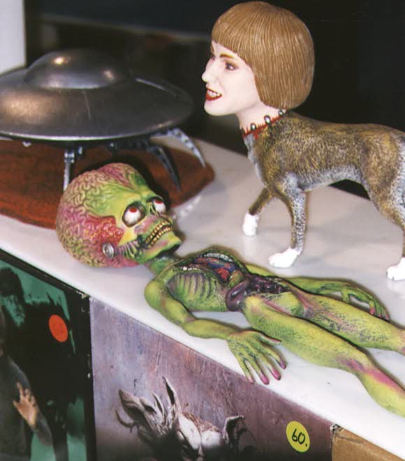 Sassy’s Satellite had a collection of great stuff for Mars Attacks fans. As well as their Spy Girl, they now have a really nice Autopsy Alien - lying down with his chest peeled open - yeuck! I would guess it’s about 1/4 scale. Also available was the dog with Jessica Parker’s head, and a cute little 2" high super deformed alien trooper. For Hellraiser fans there were some nice 1/4 scale busts of Angelique and The Twins from Bloodline, as well as another female who I didn’t recognise. These have been produced by Bloodline FX artist Gary Tunnicliffe. The piece de resistance was a beautiful 1/4 scale Pillar of Souls from Hell on Earth - this was apparently cast from the original maquette used to produce the full-sized version. Very nice. Very heavy. Very expensive :-(