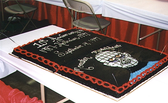 At the end of Sunday, a special cake prepared by the show organisers was unveiled - 2’ by 3’ of black icing with Pinhead’s face on it, complete with pins! This was then ceremoniously cut up and distributed to anyone who wanted a piece - and very yummy it was too!