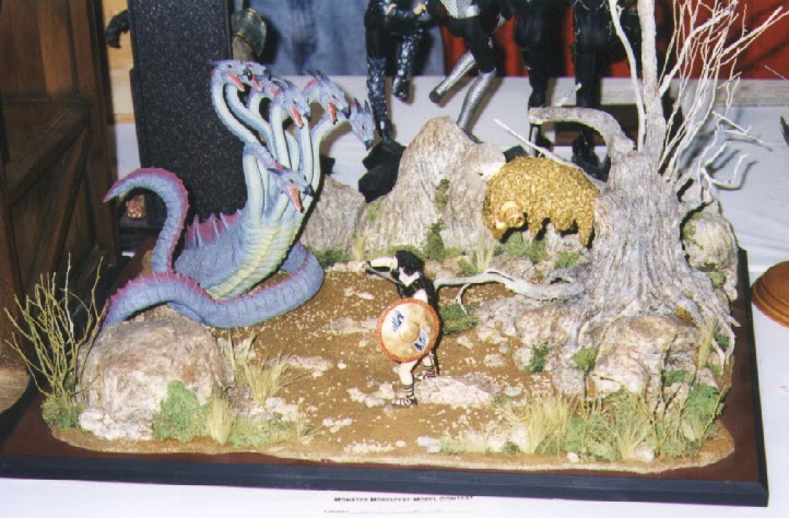 Screamin’ Models Inc. had a big display of all their current kits, as well as a few "coming soon". I was hoping their new 1/6th scale Pinhead would be available to buy at the show, but production was running a few weeks late. The kit features Pinhead clutching a hook with impaled heart and skull in one hand, and beckoning with the other. Peeking out from the bottom of his robe are the mangled remains of some poor victim. Also on display was a new werewolf kit, sculpted by Paul Komoto, and a young lady relaxing in a bubble bath, apparently oblivious to the demon trying to force his way through the bathroom wall behind her.