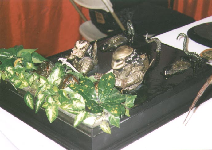 I would guess there were about 100 dealer tables, the majority of which were either kit producers or retailers, with a smattering of video, comic & poster vendors. George Stephenson was manning his GEOmetric Design stand - the big item of interest was his new 1/8th scale Predator kit, and very nice it is too! Both the regular version and the limited edition clear vinyl versions were on sale - it sounds like the clear edition will actually be even more limited than originally planned because of yield problems - so if you want one, it’s probably already too late! Also available was a resin base for the Predator, featuring a tree stump on a leafy forest floor setting. Tucked away in the detail are a small rat and a tiny scorpion! Also on show were the 1/8th scale Aliens and diorama bases. Coming soon from GEOmetric will be a 1/8th scale Ripley, sculpted by Mike Hill.